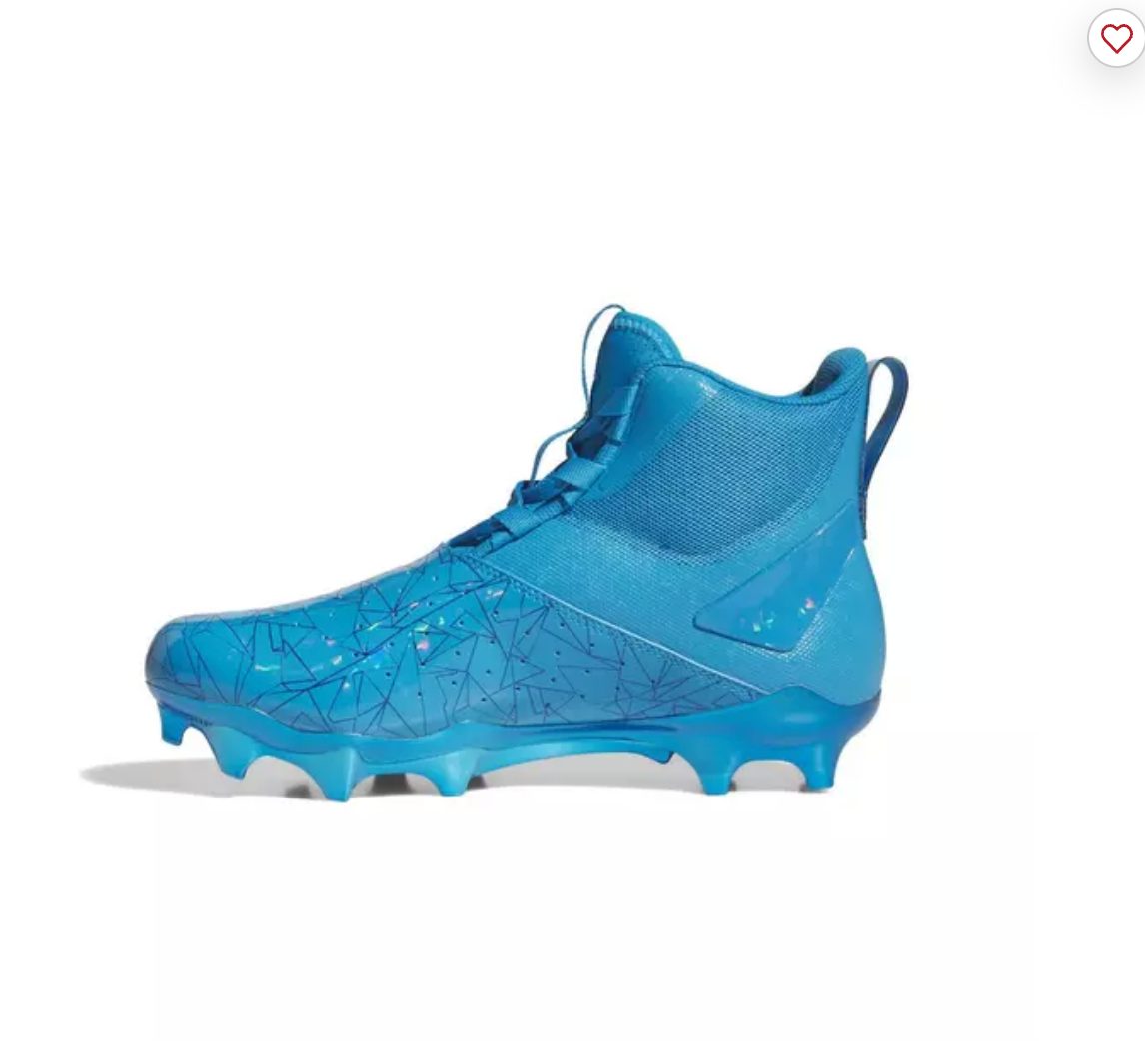 Unleash the power of agility with the adidas adiZero Chaos AAB "Solar Blue/Ftwr White/Solar Blue" Unisex Lineman Football Cleat. These unisex cleats, designed for adults, are built with a blend of textile and synthetics, offering durability and comfort on the field. The shoes feature a regular fit and are partially made with recycled materials, reflecting adidas' commitment to sustainability. With these cleats on, dominate every game with confidence and style.Features