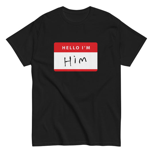 Hello, I'm Him - Name Tag Men’s Premium heavyweight tee
